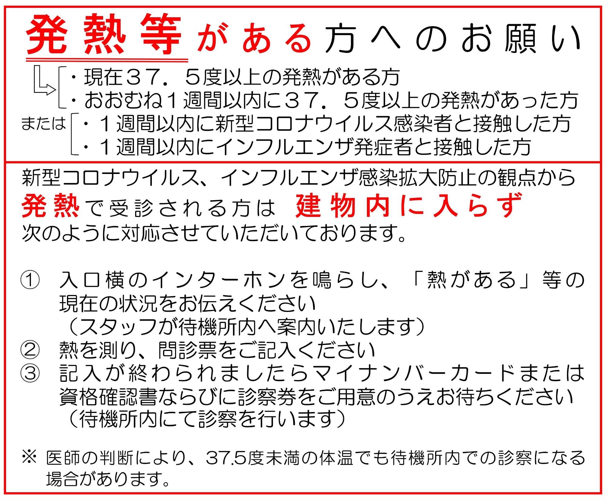 「37.5℃以上の熱がある方への対応について(お願い)」