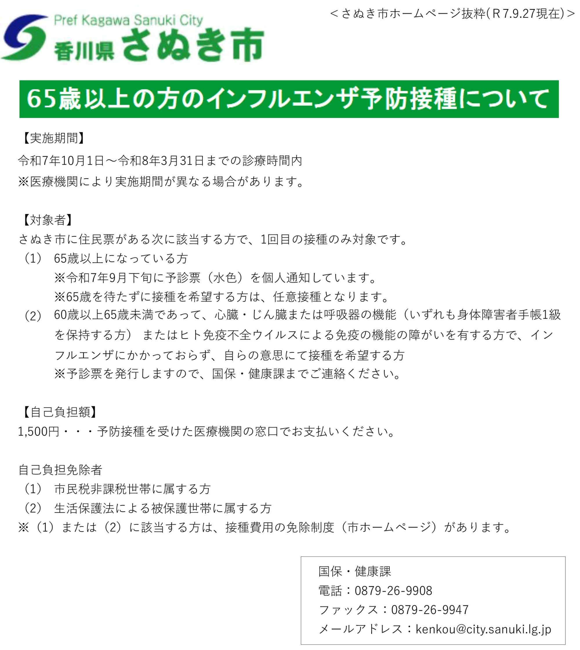 ご不明な点等がございましたら当院またはさぬき市国保・健康課(☎0879-26-9907)までお尋ねください。